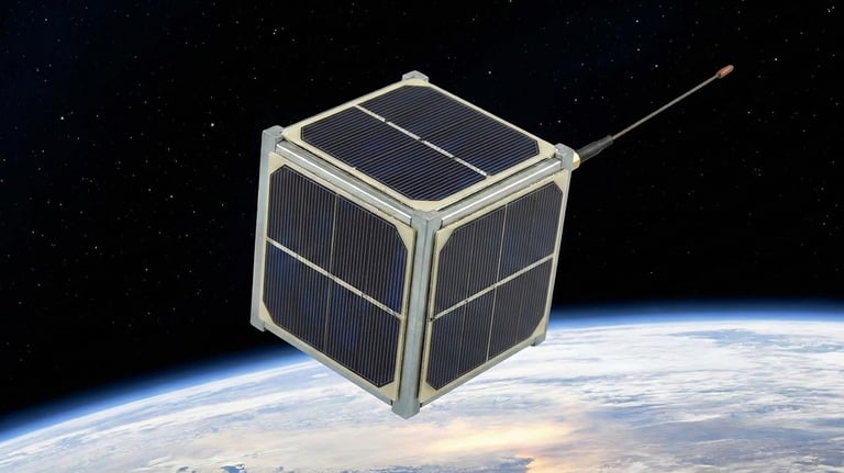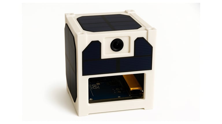 It is a compact cube-sat prototype equipped with a camera, temperature and humidity sensors, solar panels, and LoRa communication. Lifted up to 1 km using a high-altitude balloon. It serves as an essential platform for testing small satellite systems and atmospheric research.